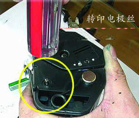 转印电极丝断路;更换电极丝。(电极丝的位置:硒鼓下面 有的机器用的不是电极丝 用的是转印辊,和鼓芯靠在一起的,是条橡胶辊里面)